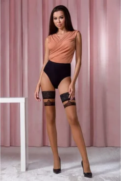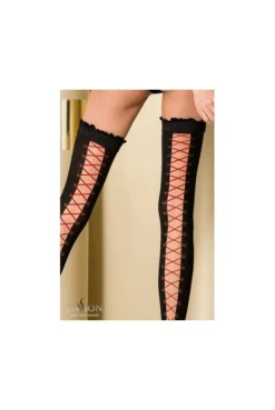 Bas AutoFixants Effet Jarretelles Ultra Sexy Chic Noir Et Rose