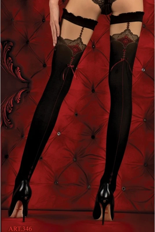 Bas Opaque Noir Lacé Rouge Auto Fixant