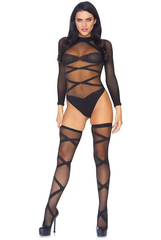 Body croisillons opaques avec bas assortis. 2 pièces. Création Lingerie Leg Avenue.