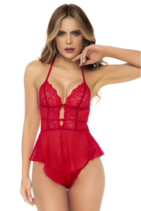Ensemble Sexy Chic Soutien Gorge Porte Jarretelles et String Rouge