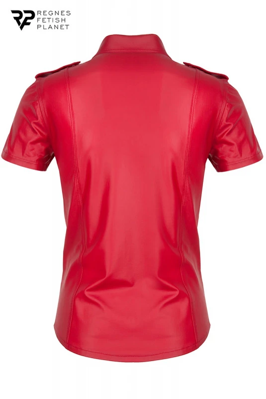 Chemise Fetish Homme Manches Courtes Wetlook Rouge Carlo