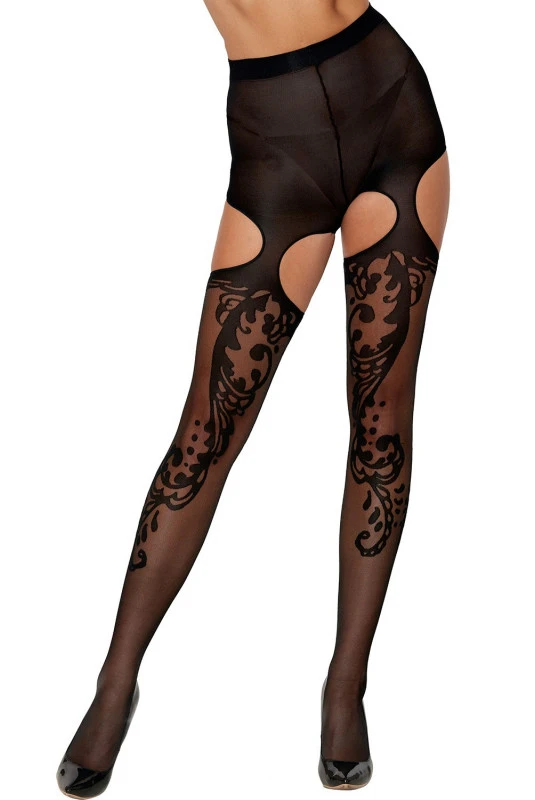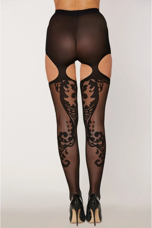 Collants Ouverts Effet Bas Couture Plumetis Petits Noeuds Beige