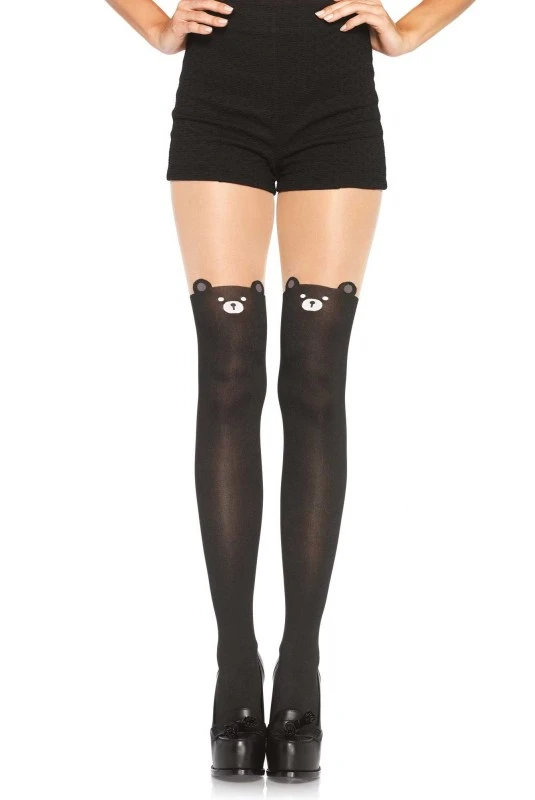 Deux adorables oursons se baladent sur les jambes ! Collant illusion bas. Opacité 70 deniers. Le haut est de couleur chair. A l’arrière on peut voir apparaître les petites queues des ours.