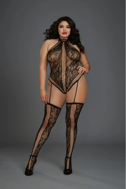 Combi Grande Taille Body String Dentelle Jarretelles Bas