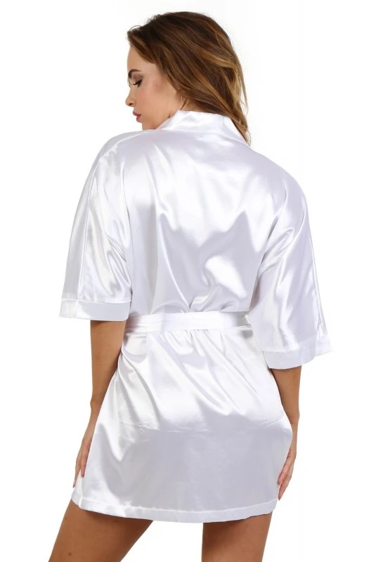 Déshabillé Court Peignoir Kimono Satin Blanc