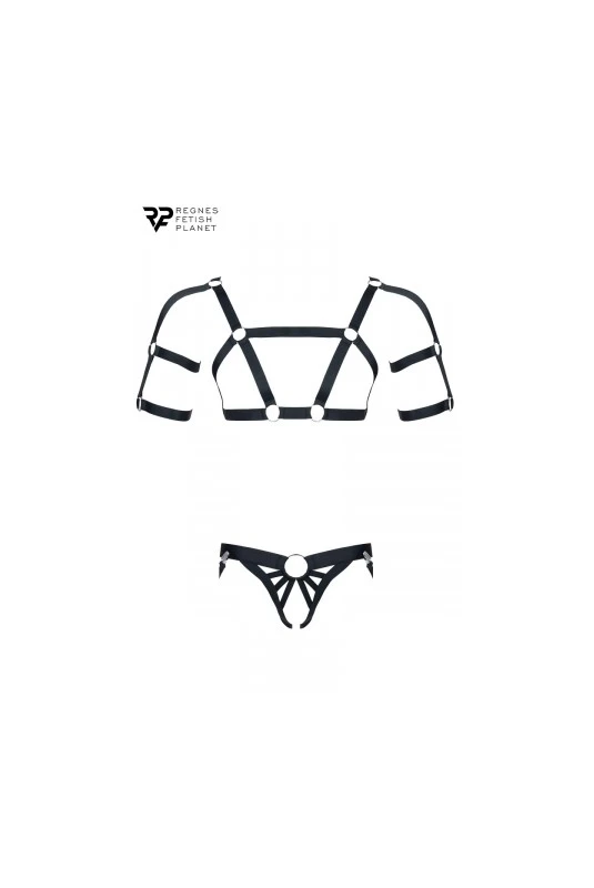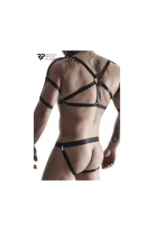 Harnais haut et jockstrap ouvert en lanières élastiques fabriqués par la marque Européenne Regnes.