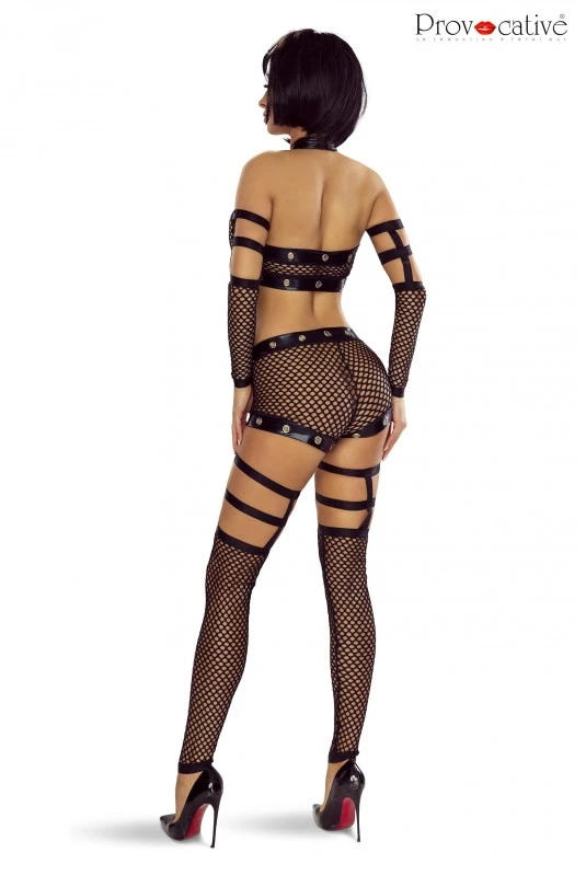 Ensemble Fetish Sexy Résille Wetlook 4 Pièces
