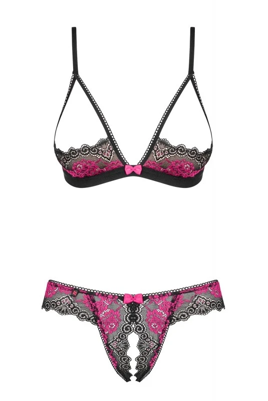 Ensemble Ouvert Seins Nus Tulia Noir Fuchsia