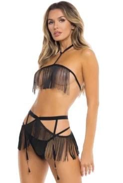 Ensemble Sexy 3 Pièces à Franges Haut Jupette et String