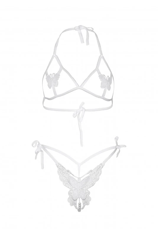 Ensemble Sexy Ouvert Perles et Papillons Blanc