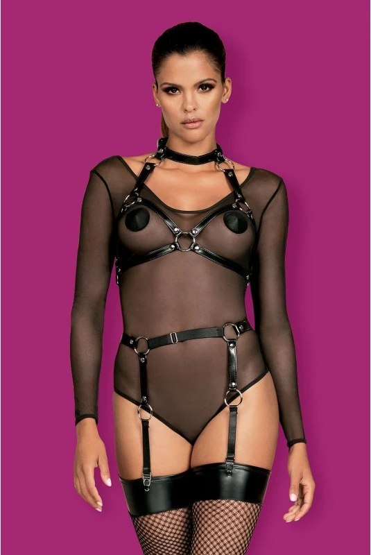 Harnais Fetish Seins Nus BDSM SM Simili Cuir