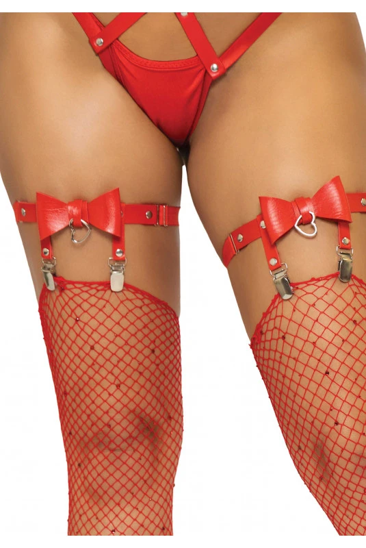 Jarretières Noeud Cuir Vegetalien Rouge