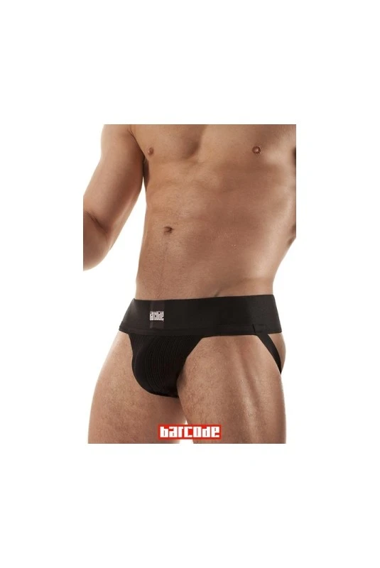 Un Jock Strap de grande qualité, dans sa version noire, fabriqué par l’entreprise gay berlinoise Barcode.