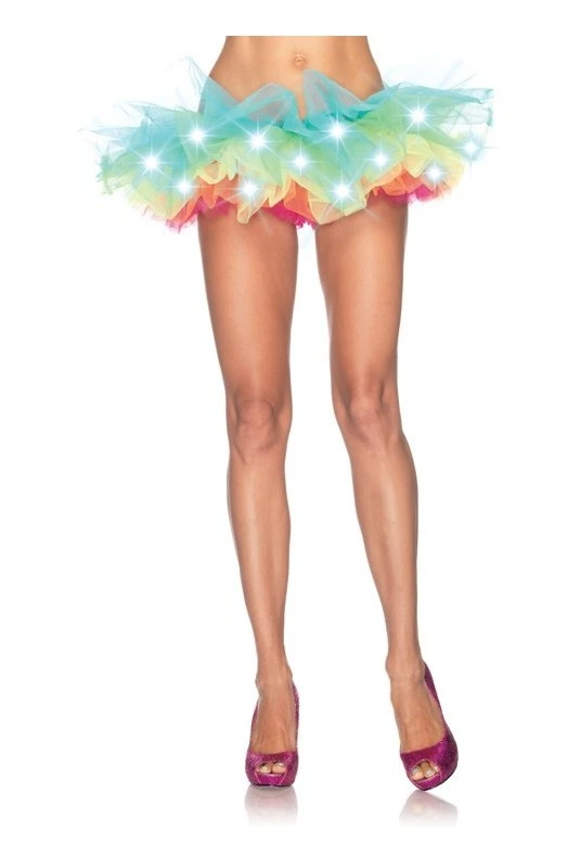 Pourquoi faire comme les autres quand on peut se démarquer ! Un jupon qui s’éclaire par leds ! Action par petit interrupteur discret. Effet « bouffant » dans une superposition de tulle multicolore.