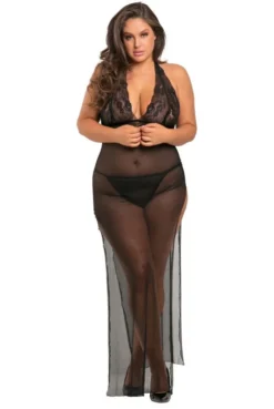 Nuisette Longue Déshabillé Grande Taille Fendue Transparente