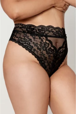Tanga Ouvert Noir Grande Taille Pièces Dentelle Sur Les Fesses