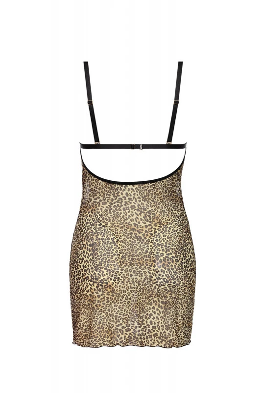 Délicieuse nuisette en tulle fluide imprimé léopard, brodée sur le décolleté.