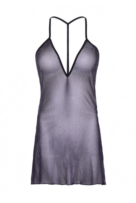 Robe Courte Transparente Fendue Lurex Argent et Noir