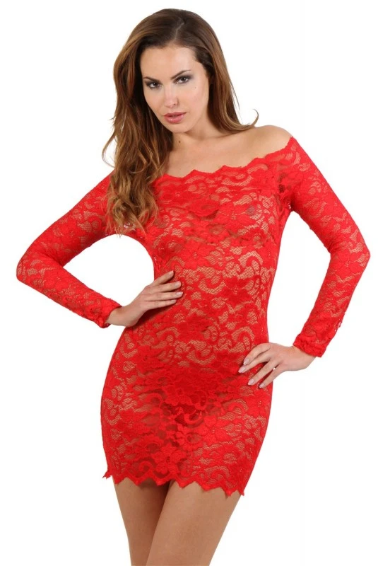 Robe Lingerie Dentelle Rouge Manches Longues Spazm