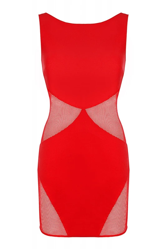 Robe Sexy ClubWear Rouge Ajourée Maille Transparente