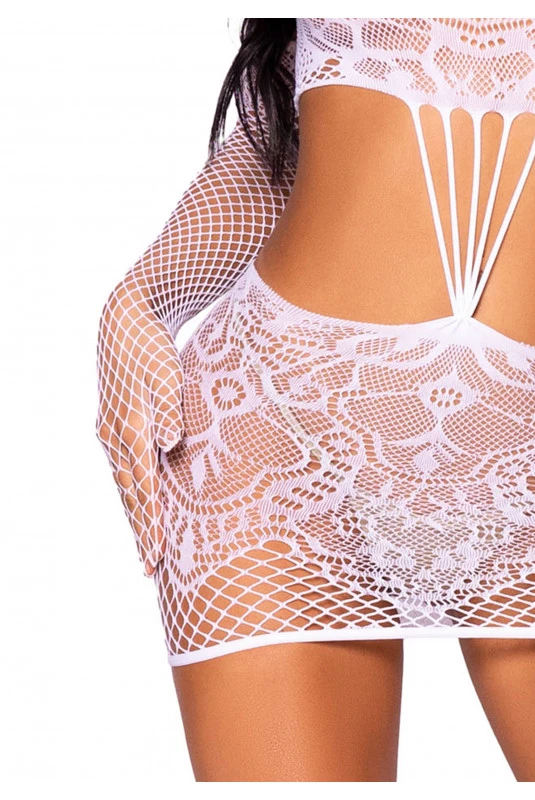 Robe Tube Sexy Blanche et Gants Dentelle Résille