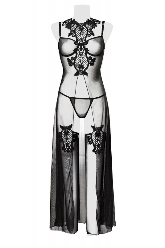 Set Déshabillé Luxe Tulle Et Dentelle 2 Pièces