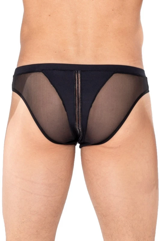 Slip noir avec larges bandes verticales sur le devant de la collection Biker de LOOKME.
