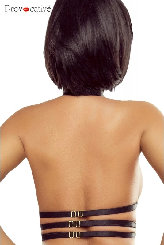 Soutien Gorge Fetish Tour de Cou Harnais Fetish Satiné Noir