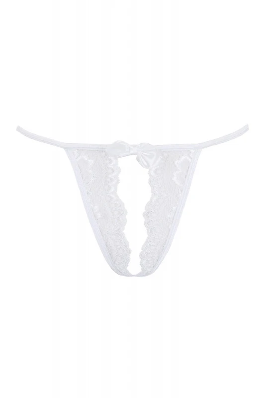 Mini string fendu blanc sexy, en fine dentelle.
