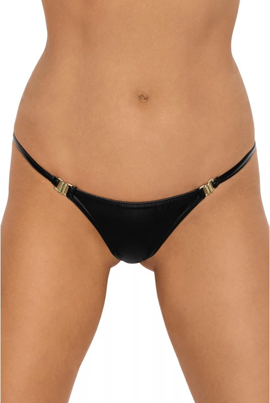 String en wetlook mat, avec deux clips en métal doré détachables sur les cotés pour faire votre show !