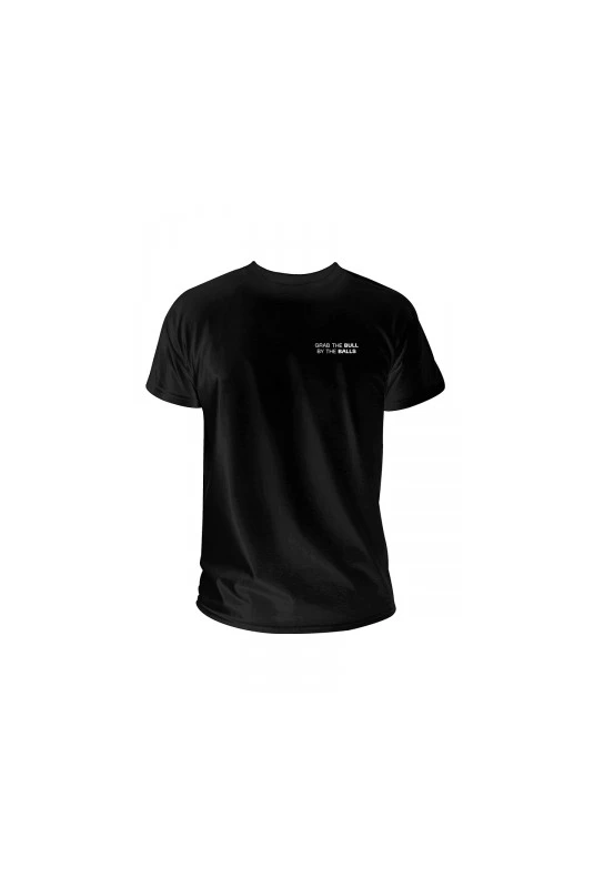 Investissez dans la cryptomonnaie avec Jimizz ! T-shirt noir collector « Grab the bull by the balls ».